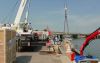 im Hafen von Venedig auf eine spezielle Schwerlastgondel